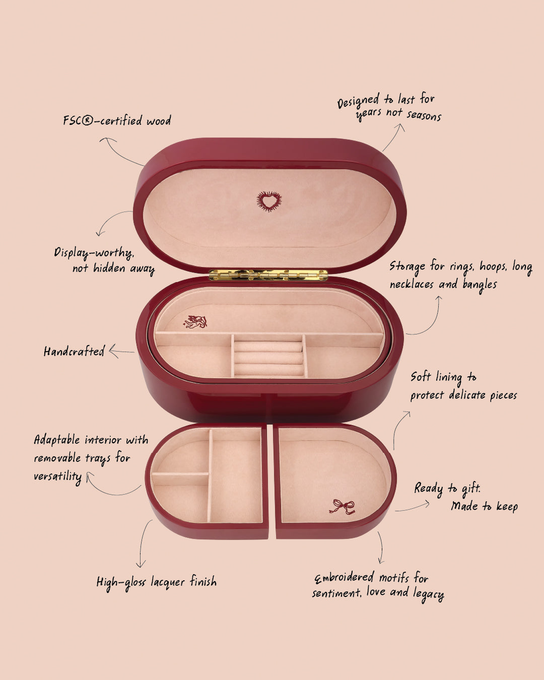 Thoughtfully designed to protect, organise, and honour your jewellery - from everyday essentials to once-in-a-lifetime pieces. Crafted from FSC®-certified wood, with a focus on longevity, craftsmanship, and considered detail.